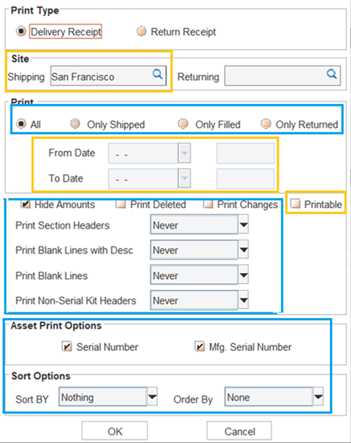 If no form setup exists, the delivery receipt will be generated based on the default form packaged within the API.