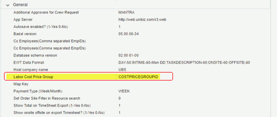 The default Pricing in R2 Labor can be defined in R2 Labor Settings > Configuration > Config. Parameters > General section > Labor Cost Price Group, as shown in Figure 2.1.