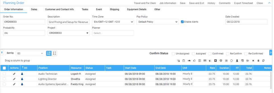 The Rate column displays the modified Rate for each of the Labor Position as per the Assigned Resource and the Unit tagged.