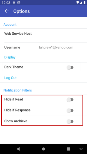 Show Archives: If this filter selected, the app maintains an archive of read, responded, and deleted notifications and messages..