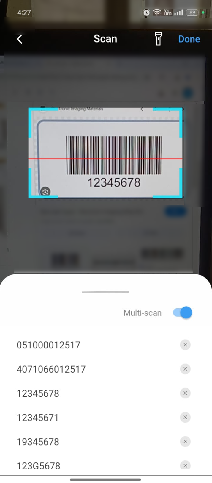 When you start scanning, you'll see a toggle button with 'Multi-scan' enabled. You can turn it off if you don't want to scan multiple items continuously.