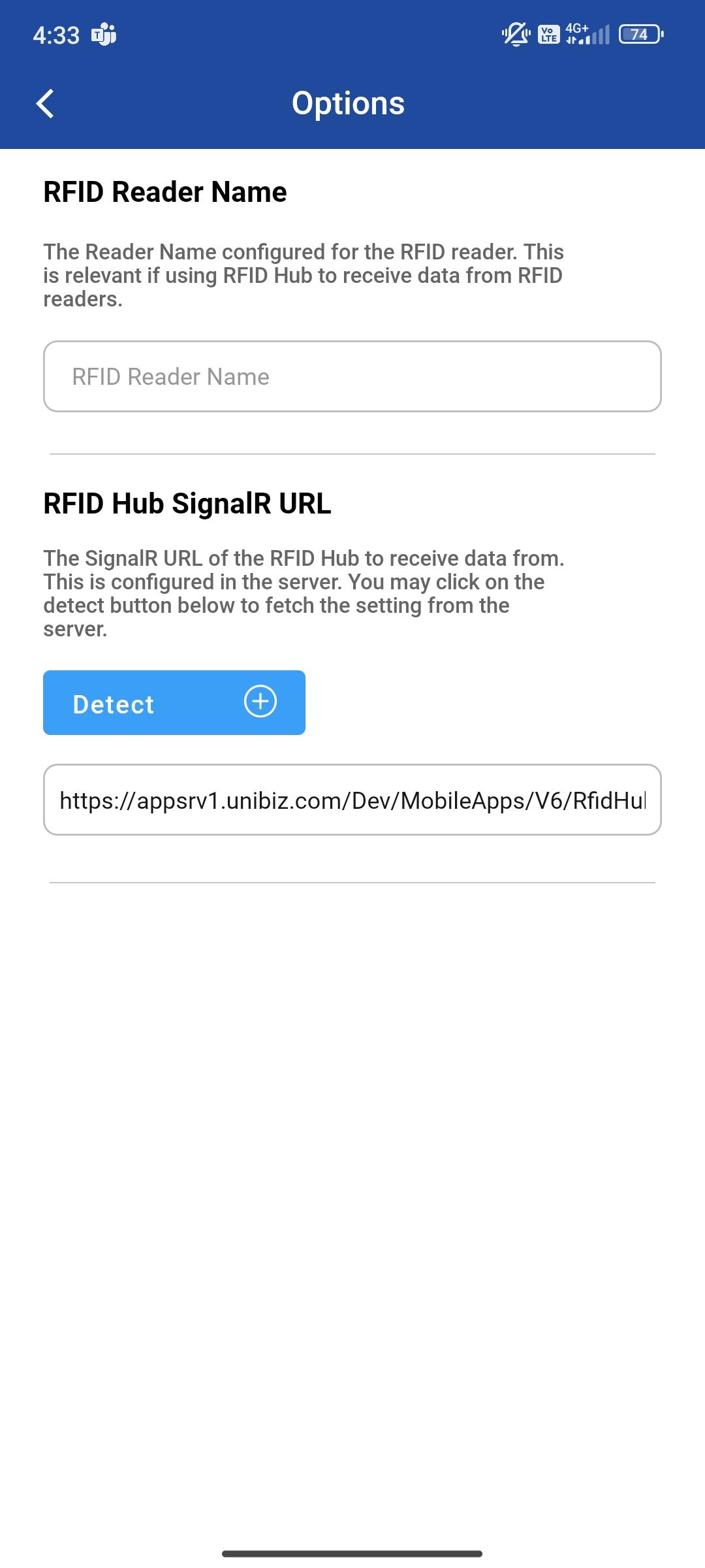 If you want to integrate RFID, set the RFID Reader Name and RFID Hub URL in the below fields