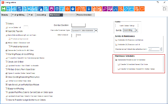 Generate Warehouse Schedules | Selected | Selected |