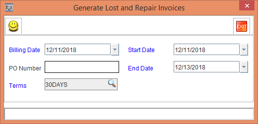 Click Yes. The Generate Lost and Repair Invoices window is displayed.