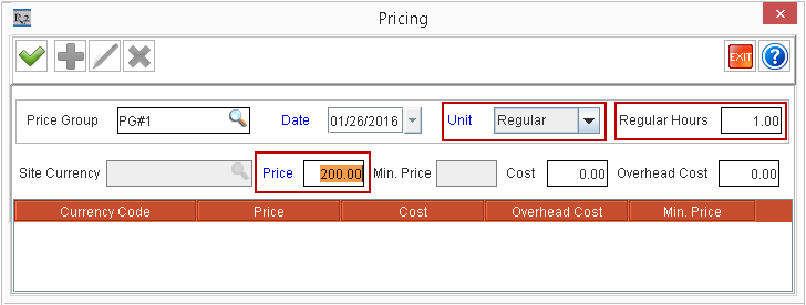Price Group | Effective Date | Unit | Price | Regular Hours | Screen Shots |