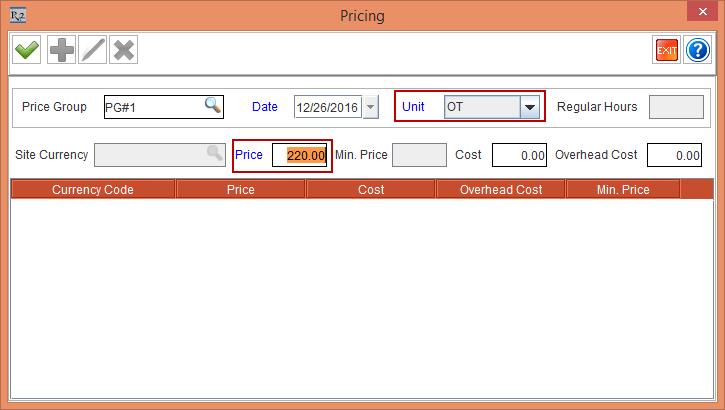 Figure19.0 OT/DT Price calculated based on the OT/DT Factors and Regular Hours defined for Price Group PG#1
