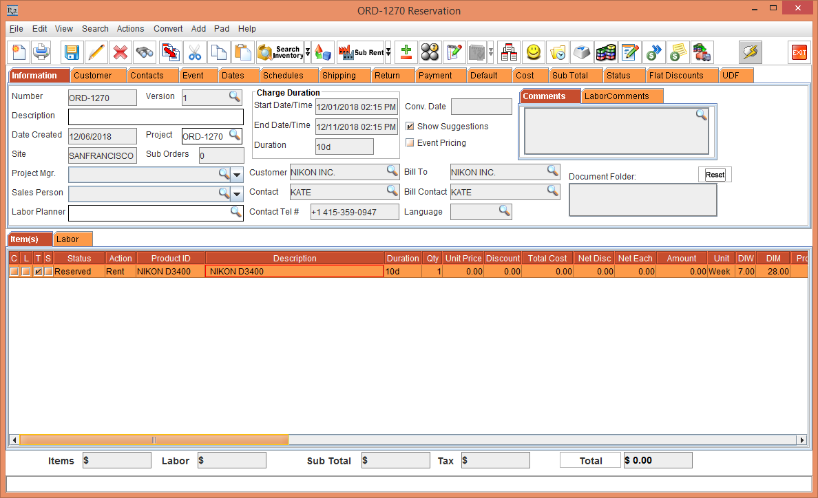 Figure 1.0 Rental Reservation Order [ORD-1270]