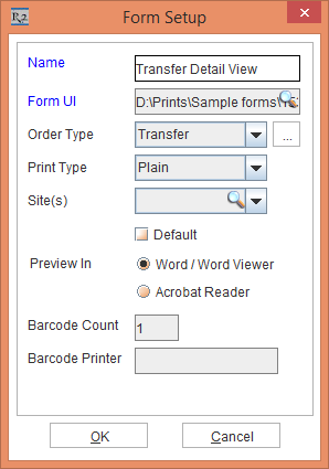 Figure 2.1 Form Type Options window > Transfer Order Print Option window