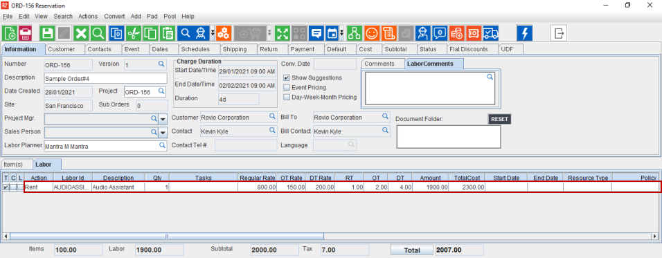 Add the created Task to the Labor line. The RT/DT/OT Hours/Rate does not get modified based on the Task and only the Dates gets changed.