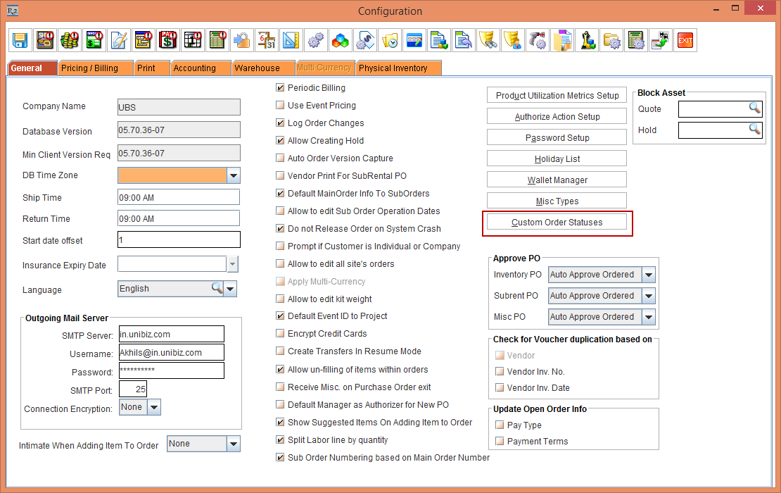Figure 1.0 In Configuration module clicking Custom Order Statuses button