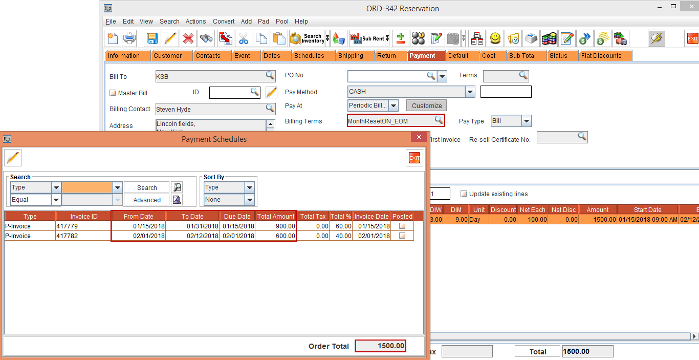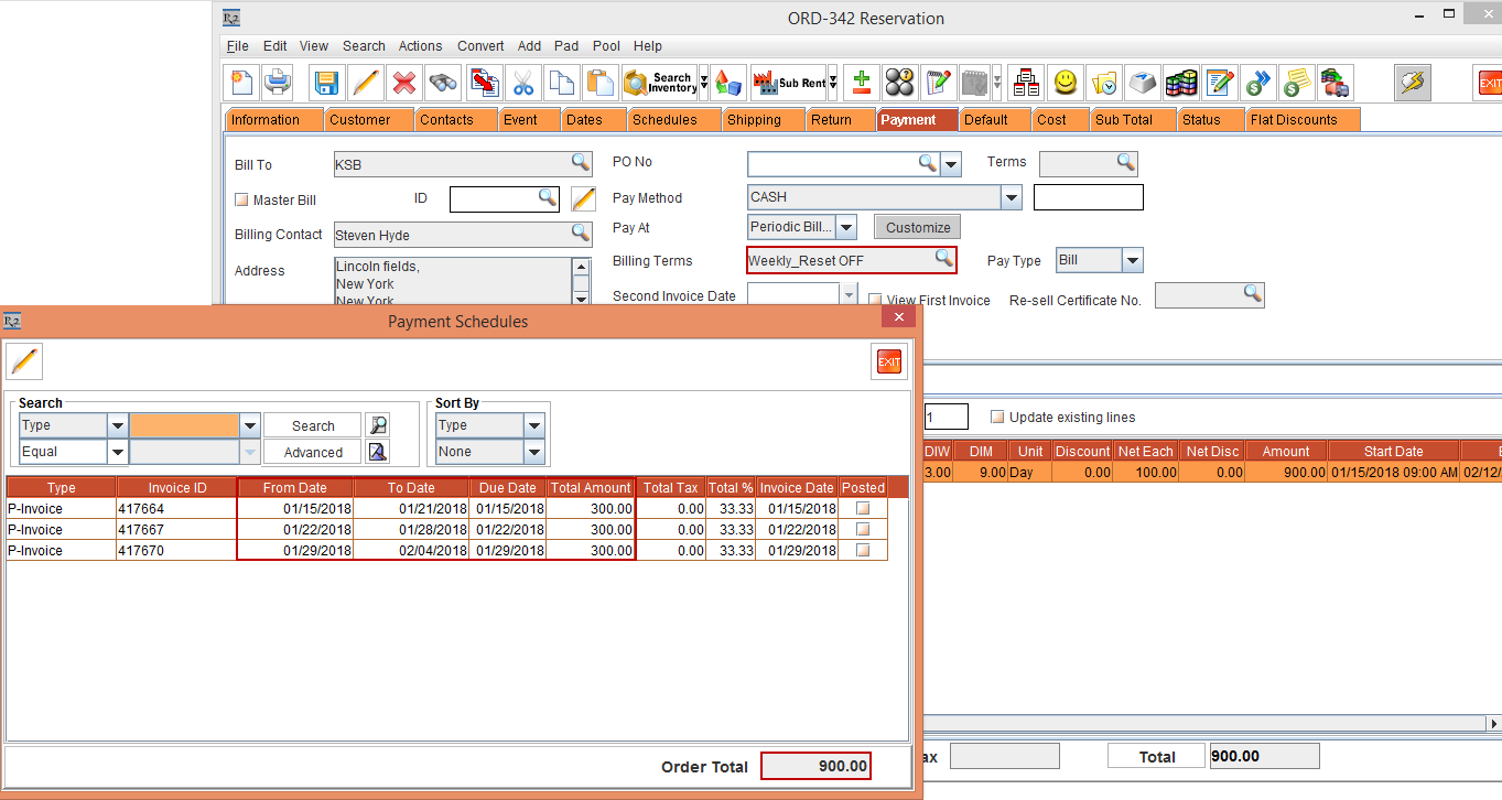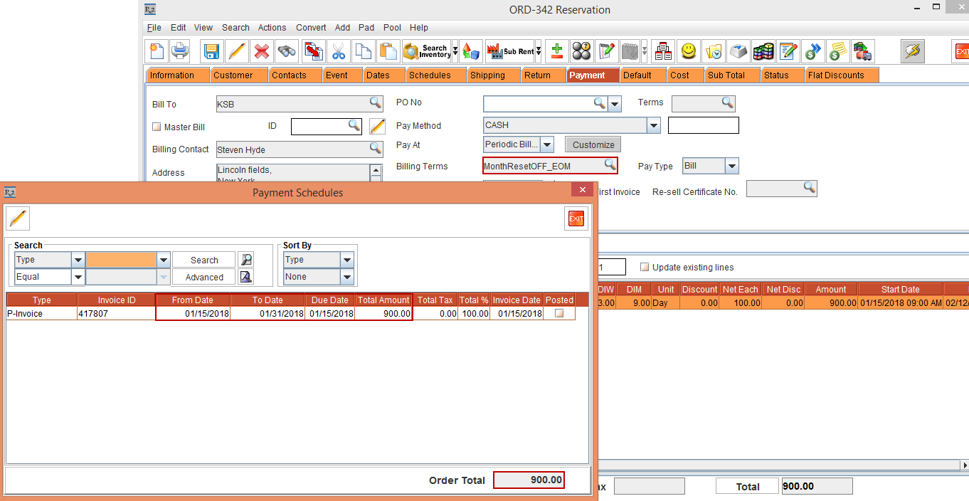 Select the Reset Billing check box in Billing Terms dialog > click the OK button > Tag the Billing Terms [ID414825]. Observe that the Order Amount is 900.