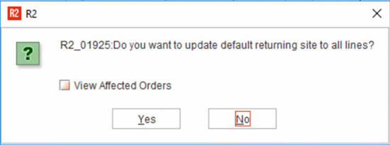 However, when the Returning Site for an Order is Changed, system displays the following prompt.