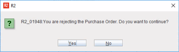 Else, if the user is amongst the designated approvers, then based on whether they had chosen to Approve/ Reject the PO either of the following prompt is displayed.