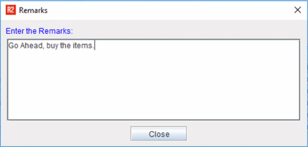 Instead, R2 prompts the approver for Comments/ Remarks in dialog box.