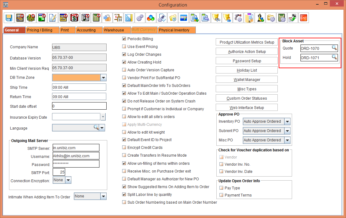 2. In the Block Asset section, select the importable button > the Search Orders window is displayed. Tag the Quote [ORD-1070] in the Quote field and the Hold [ORD-1071] in the Hold field, as shown in the Figure 1.0.