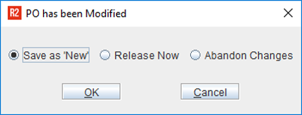 Save as 'New': R2 will create a new version of the existing PO, along with the changes you have made. The status of the PO at this stage will be 'New'.