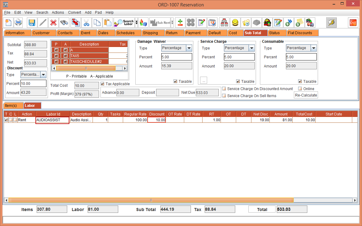 1. Add the Labor [AUDIOASSIST] to the Order with Price as 100 and Discount as 10, as shown in Figure 1.4