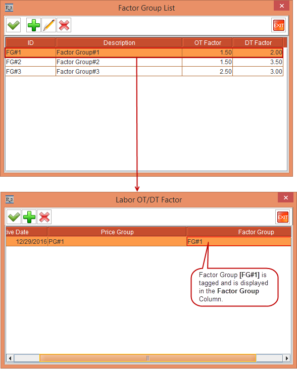 Figure7.0 Tagging Factor Group Definition to Factor Group column in Labor OT/DT Factor Dialog Box