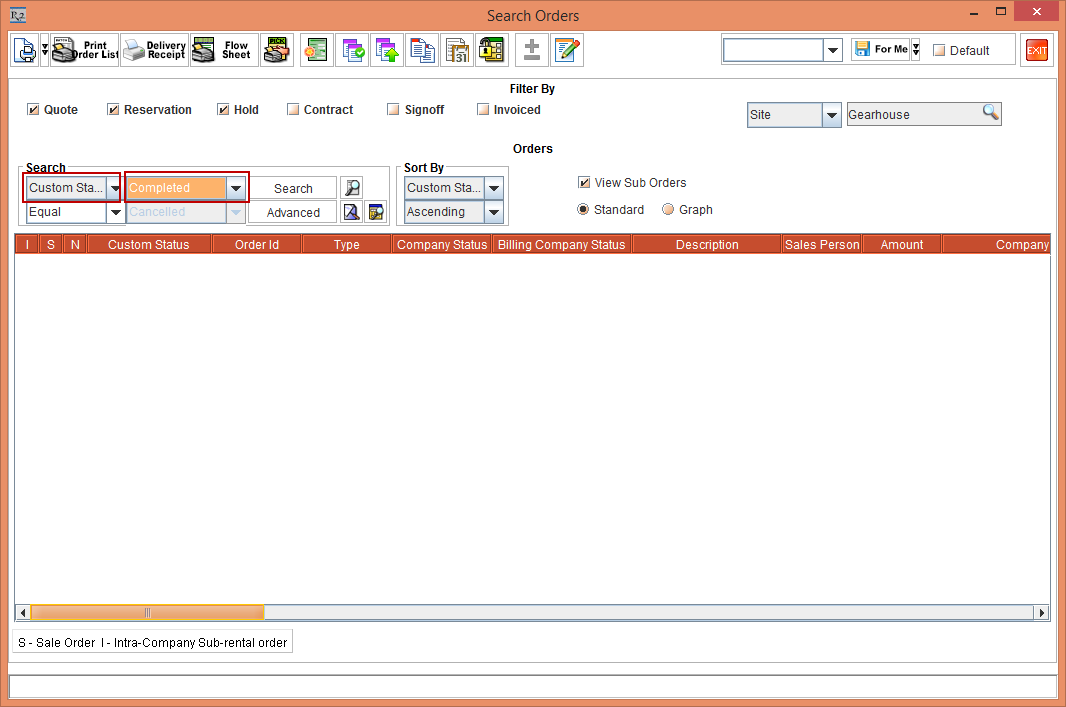 Open the Search Order window and select the Search drop-down as Custom Status and Completed, as shown in Figure 1.3.