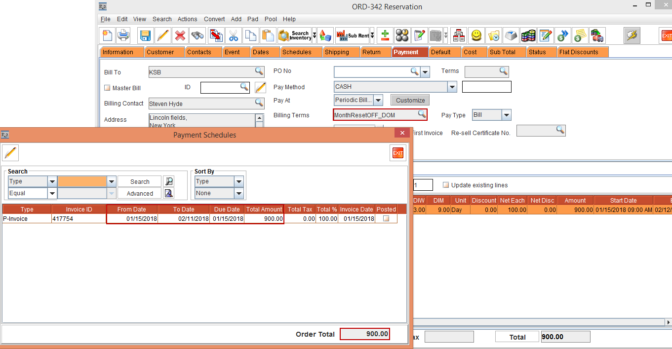 Select the Reset Billing check box in Billing Terms dialog > click the OK button > Tag the Billing Terms [ID414825]. Observe that the Order Amount is 900.