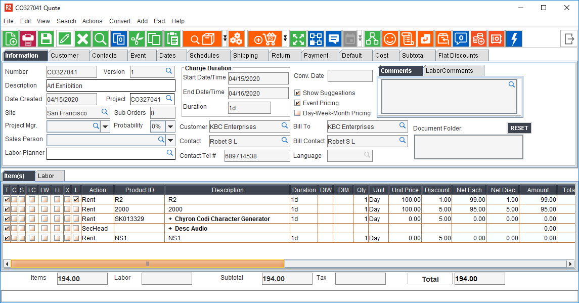 2. Create/Open an Order. Add the Kits, items, and sections to the order (as required).