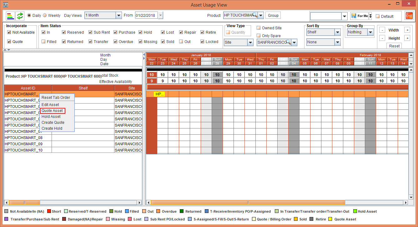 Figure 1.5 Asset Usage View for Hold Asset