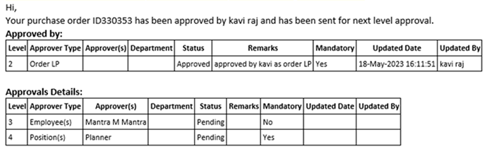 Once the 'First Mandatory Level' is approved, the subsequent level approvers until the 'Next Mandatory Level' will receive a similar E-mail like the previous one.