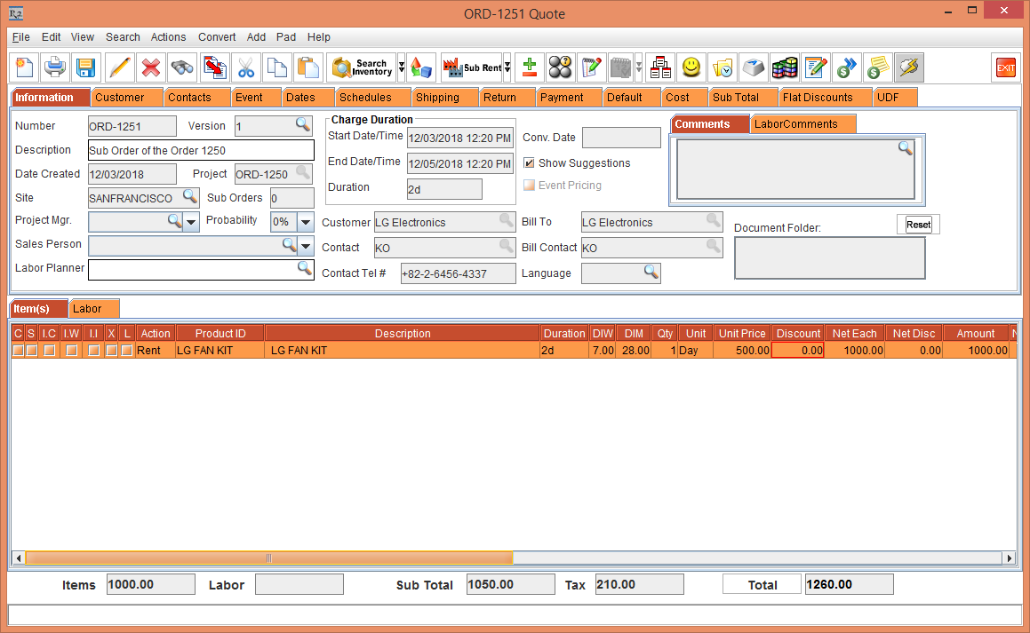 Figure 1.1 Sub Order [ORD-1251 Quote]