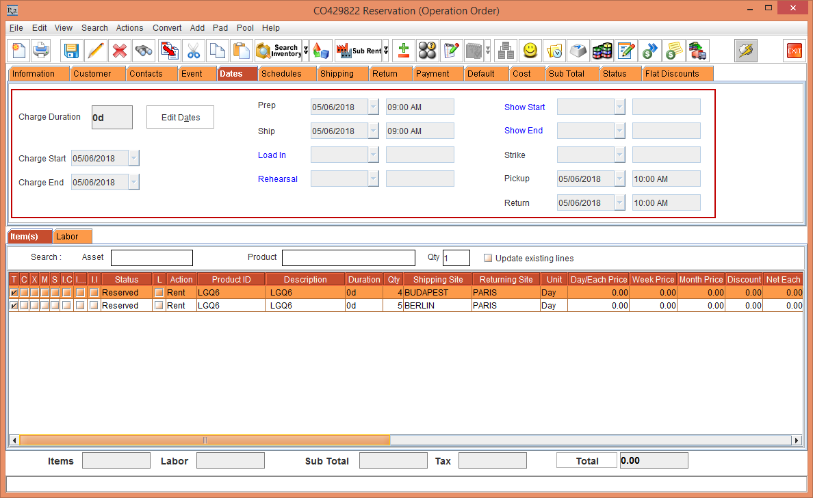 The Item lines that are not returned from the linked Operation Order, the turn around time defined in the Item line Edit window is not impacted.