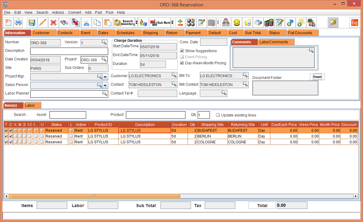 Figure 4.8 Rental Reservation Order [ORD-360] with Item [LG LED]