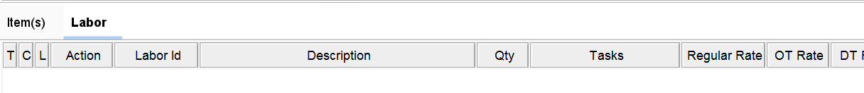 To add labour to your order, click on the Labor(s) tab of the item grid.