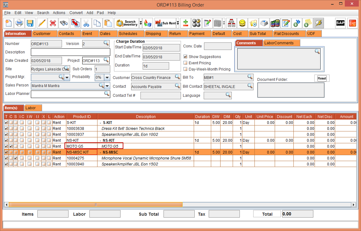 2. Create an Rental Order Quote [ORD#113].