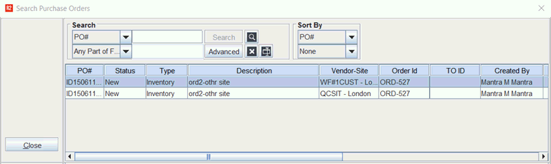 Go to Account > View and select Purchase Orders, to open the PO Search window. Now, click on the Purchase order icon