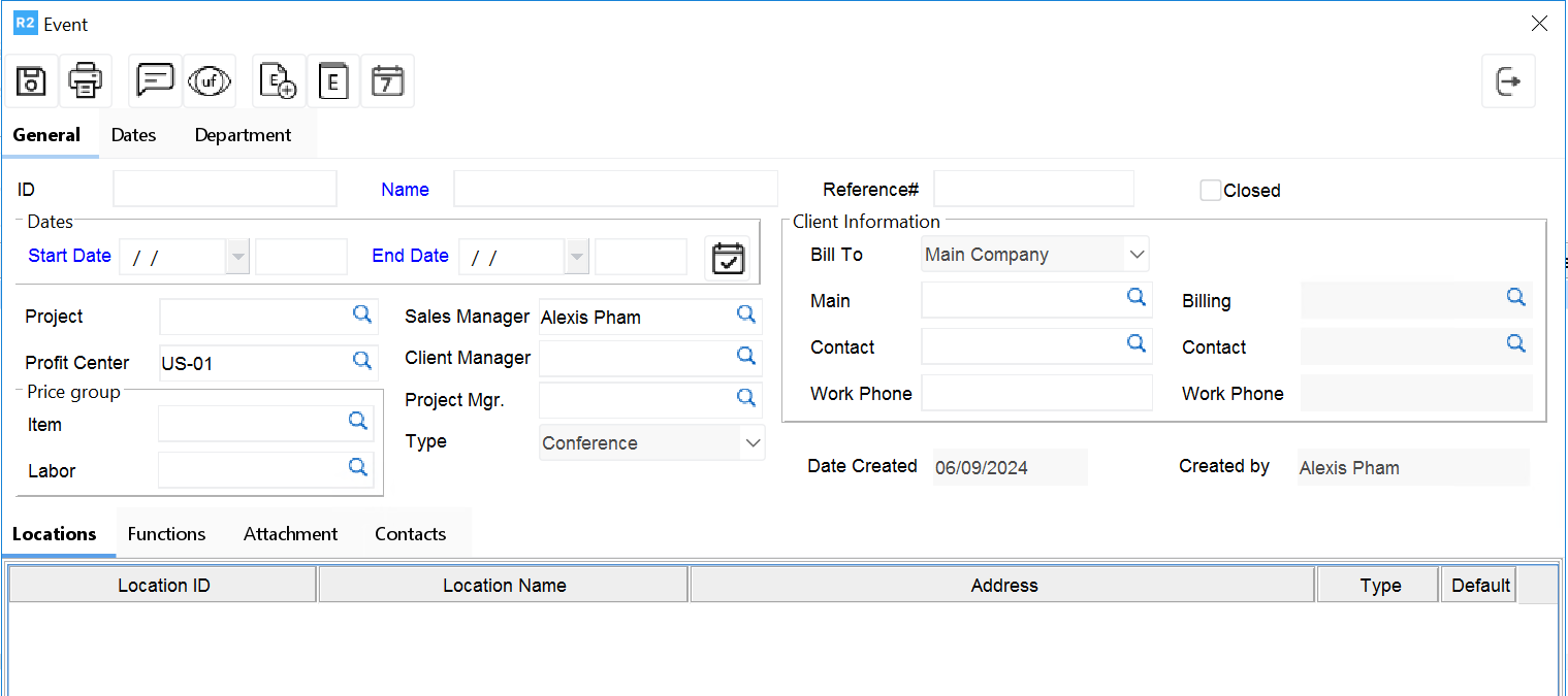 Main Company along with Main Contact Name, Billing Company and Billing Contact.