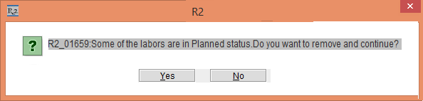 If the Operation Order has Planned Labor lines and you Regenerate the Operation Order the system display the following error message.