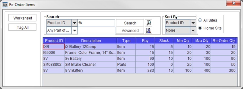 Min Quantity: When stock falls to or below this level, the Reorder Worksheet will prompt a reorder for this part.