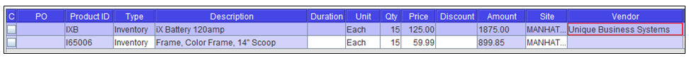 Highlight one or more lines and click on the Select Vendor button. A vendor search screen will appear. After tagging a vendor, you’ll see the vendor next to each item: