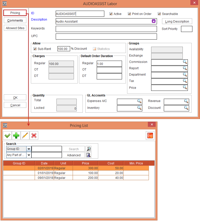 4. Create a Labor Position [AUDIOASSIST] with the Pricing defined, as shown in the Table 2.0 and Figure 2.1.