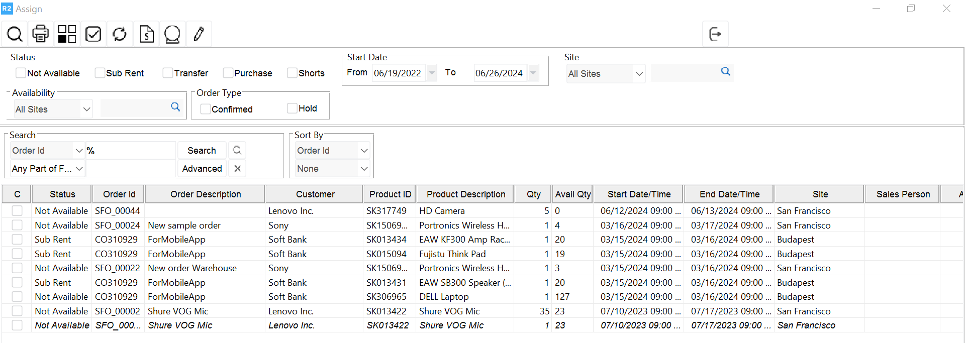 To assign a sub-rental purchase order to an item, right-click the row header of the item you wish to assign and select Assign from the pop-up menu.