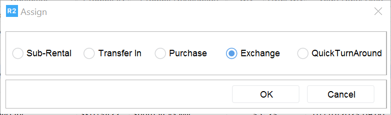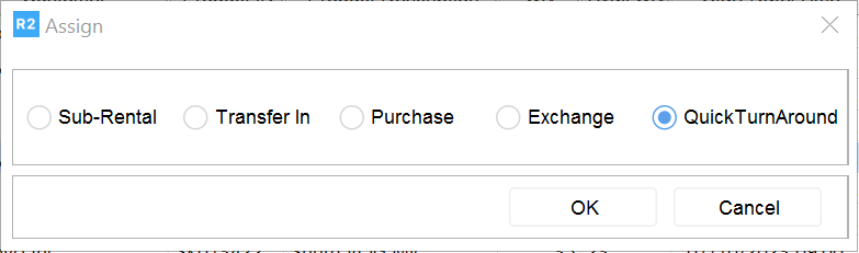 The Assign dialog appears listing five options. Select the Sub-Rental option by clicking on the radio button to the left of the option name. Click OK.