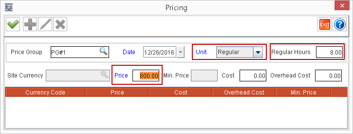 Price Group | Effective Date | Unit | Price | Regular Hours | Screen Shots |
