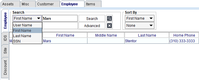 From the Maintenance module, click on the EMPLOYEE tab along the top of the search area, then click on the EMPLOYEE tab along the left side: