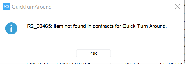 If R2 finds orders meeting the quick turn requirements, the available orders will be listed. Otherwise the following message will be displayed.
