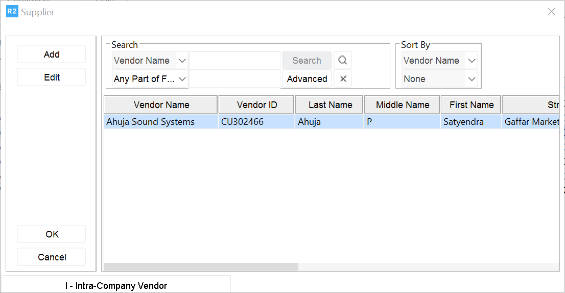If the Create New Purchase Order option was selected, the vendor search window will display. Search for the vendor from which the item will be sub rented. Double click on the vendor name.