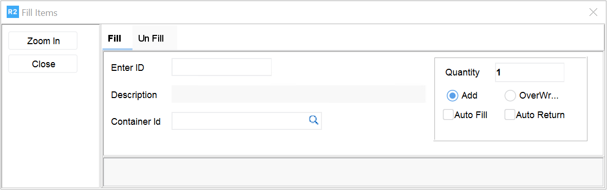 To fill non-serial items enter the quantity to be field in the Fill column. Non-Serial items can also be filled by entering the Product ID in the Fill Items window and entering the number to fill in the Quantity field.