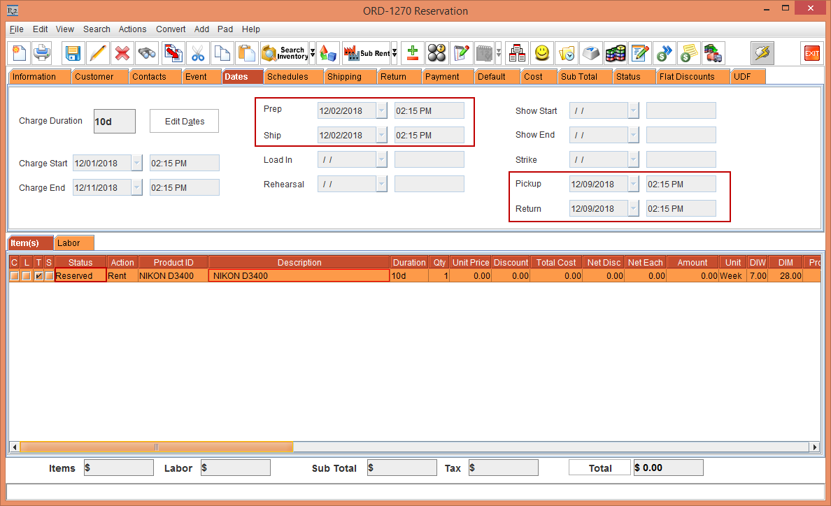 The Order line Status remains unaffected displaying as Reserved, as the Prep Date, Ship Date, Pickup Date, and Return Date has been modified within the Order duration, as shown in Figure 1.3.