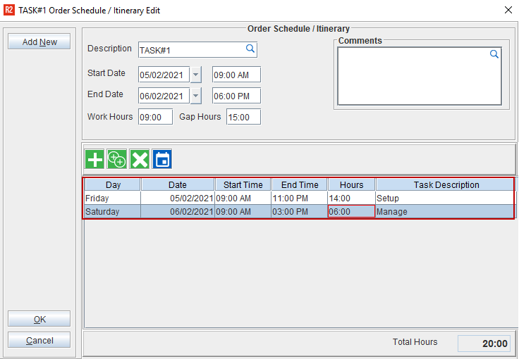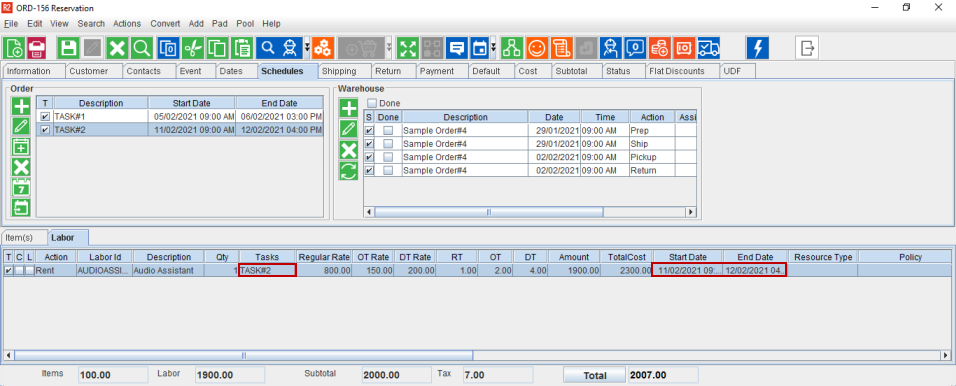 Add the created Task to the Labor line. The RT/DT/OT Hours/Rate does not get modified based on the Task and only the Dates gets changed.