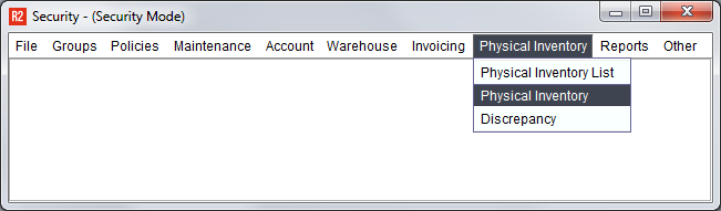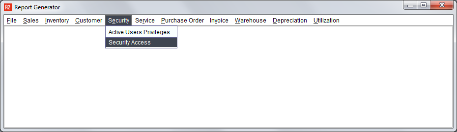 Unlike Run Time Security, System security is presented as a menu selection. A screen from R2 must be located in one of the menus and, upon selecting, will be displayed.