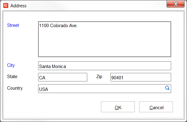 Addresses | A contact can keep address details that are different from the main company addresses. R2 can also easily keep all contact addresses in sync with the company address. See the address section above for details. |