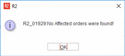 In Case there are no affected orders, the following message is displayed.